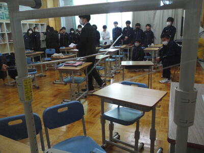 不審者として校舎内をうろついているところを、通報を受けた警察官が取り押さえる場面まで行いました。