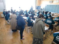 学年書記局4名が役割分担をして全て書記局が仕切っていました。4月の生活を振り返った後、学年目標「ステップアップ」や運動会目標「一致団結」を発表。設定した経緯やこれからのあるべき姿も語っていました。他の生徒たちはそれを生徒手帳にメモしている様子。一人一人が「自分たちの学年」という当事者意識を再認識できた時間となりました。