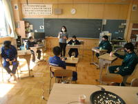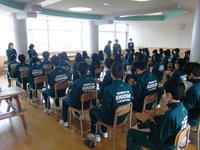 2階・3階にある多目的ホール。昼休みは生徒の交流の場として、時には学年集会の場、ちょっとした懇談の場等としても使える、まさに多目的な場所として日々有効活用されています。 今朝は3年生が学年朝会を実施していました(先日は2年生も実施していました)。今日の3年生の様子をちょっと紹介します。